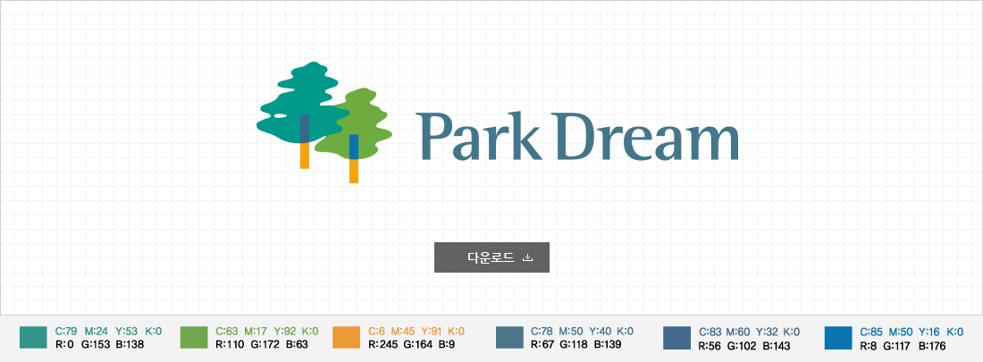 파크드림의 시그니처 심볼은 볼드하고 넓은 면으로 구성된 나무 형상으로, 울창한 ‘공원(PARK)’의 인상을 전달합니다.